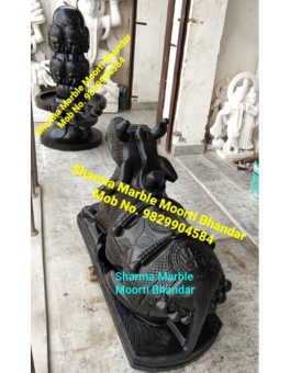 Experience divine elegance 3 Feet Black Makrana Marble Nandi Moorti with Panchmukhi Shivling, Perfect for home temples and Puja Room. Available in 1 feet, 2 feet, 3 feet, 5 feet and above on order.